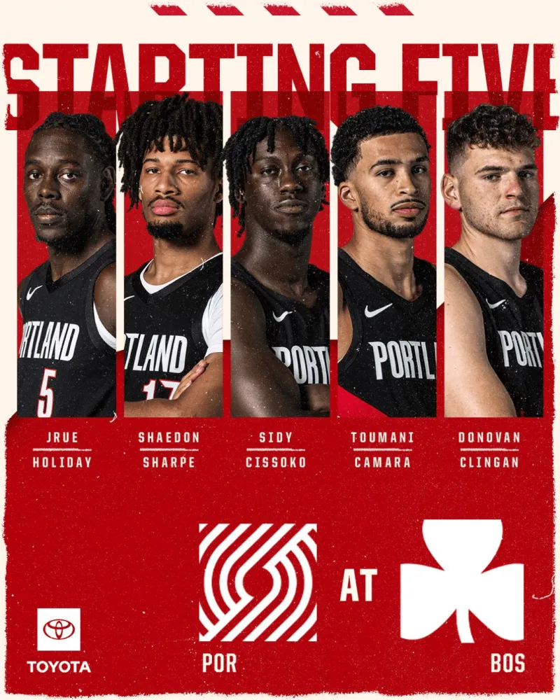 开拓者首发:霍勒迪、夏普、西索科、卡马拉、克林根